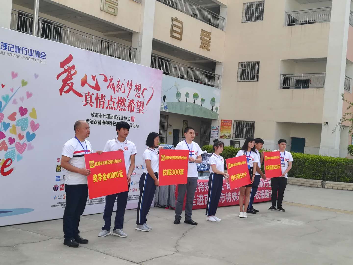 4月15日上午10點(diǎn),由成都市代理記賬行業(yè)協(xié)會(huì)主辦,成都市代理記賬行業(yè)協(xié)會(huì)老板俱樂(lè)部承辦,西昌市電視臺(tái)、西昌市人民廣播電臺(tái)合辦的愛(ài)心捐贈(zèng)公益活動(dòng)在西昌市特殊教育學(xué)校隆重舉行!作為協(xié)會(huì)理事成員單位的成都成信宏財(cái)稅咨詢有限公司,由總經(jīng)理何佳林代表,全程參與了活動(dòng)。整個(gè)活動(dòng)獲得了圓滿成功!